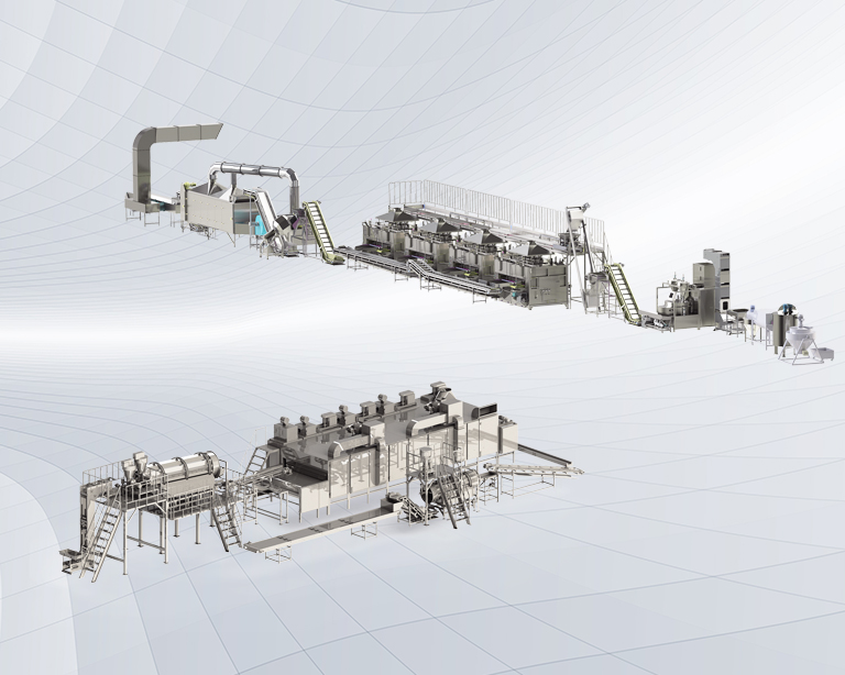 該生產(chǎn)線廣泛用于堅(jiān)果、籽類、裹粉顆粒食品、薯片、薯?xiàng)l、膨化食品等加工生產(chǎn)。
